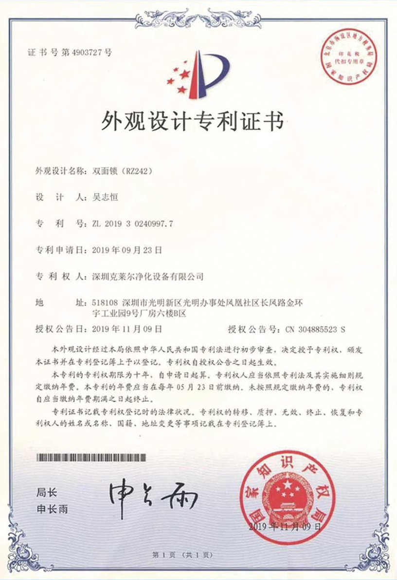 廣東克萊爾潔凈科技有限公司是一家集生產(chǎn)、研發(fā)、銷售于一體的專業(yè)潔凈門窗生產(chǎn)企業(yè)。 公司擁有現(xiàn)代化標(biāo)準(zhǔn)廠房10000多平方米,配備全自動(dòng)靜電噴涂流水線及 3000平以上萬(wàn)級(jí)無(wú)塵生產(chǎn)車間,專供潔凈門及中空窗的生產(chǎn)裝配等。公司不斷引進(jìn)一流生產(chǎn)設(shè)備(如瑞士百超激光切割機(jī)、日本AMADA數(shù)控折彎?rùn)C(jī)、超聲玻璃清洗機(jī)等),采用國(guó)際最先進(jìn)的技術(shù)及裝備確保產(chǎn)品品質(zhì),是華南區(qū)域最具規(guī)模的專業(yè)潔凈鋼制門及中空潔凈窗生產(chǎn)廠家。公司在同行業(yè)率先通過(guò)ISO9001質(zhì)量體系認(rèn)證,并先后獲得多項(xiàng)專利認(rèn)證及榮譽(yù)證書。 KLE purification equipment Co., Ltd. is a set of production, research and development, sales in one of the professional clean doors and windows production enterprises.The company has a modern standard workshop of more than 10000 square meters, equipped with automatic electrostatic spraying line and more than 30 million level dust-free production workshop, specially for the production and assembly of clean doors and hollow windows. The company constantly introduces first-class production equipment (such as Swiss Baichao laser cutting machine, Japanese AMADA CNC bending machine...
